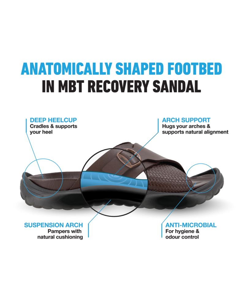 Designed with arch support and a contoured footbed that moulds to the foot's arch, MBT's Recovery Sandal ensures stability and prevents pronation or supination during movement, providing the support needed for every step.